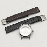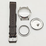 Zum Zubehör gehören: 40-mm-Gehäuse, wasserdichter Ring aus Kupfer für die innere Abdeckung, wasserdichter Gehäusering, untere Abdeckung, Krone, zwei rohe Ohren, Armband aus echtem Leder.