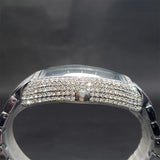 Men's Full Diamond Hip-Hop Quartz Watch | Barrel-Shaped Black Dial, Stylish Rap-Inspired Timepiece
